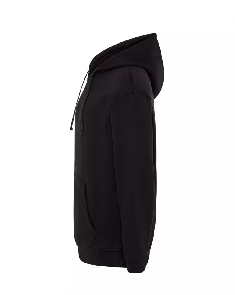 Bluza dresowa z kapturem. Naszywane kieszenie. Wzmocnione lycrą ściągacze. Sznurek ściagający w kapturze. 35% bawełna - 65% poliester.