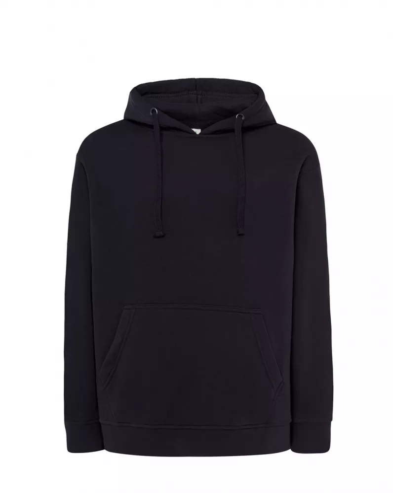 Bluza dresowa z kapturem. Naszywane kieszenie. Wzmocnione lycrą ściągacze. Sznurek ściagający w kapturze. 35% bawełna - 65% poliester.