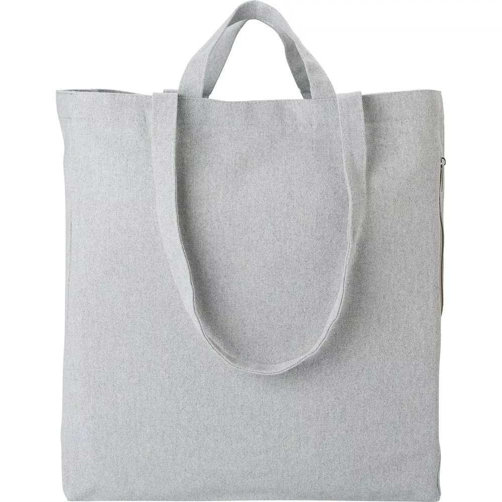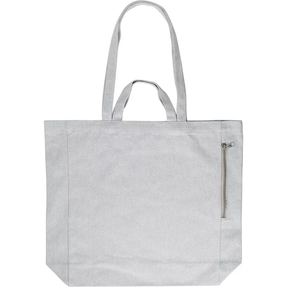 Torba na zakupy z długimi i krótkimi uchwytami, wykonana z bawełny z recyklingu, boczna kieszeń na zamek błyskawiczny