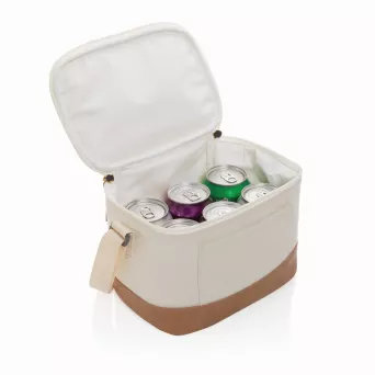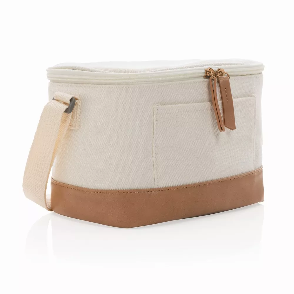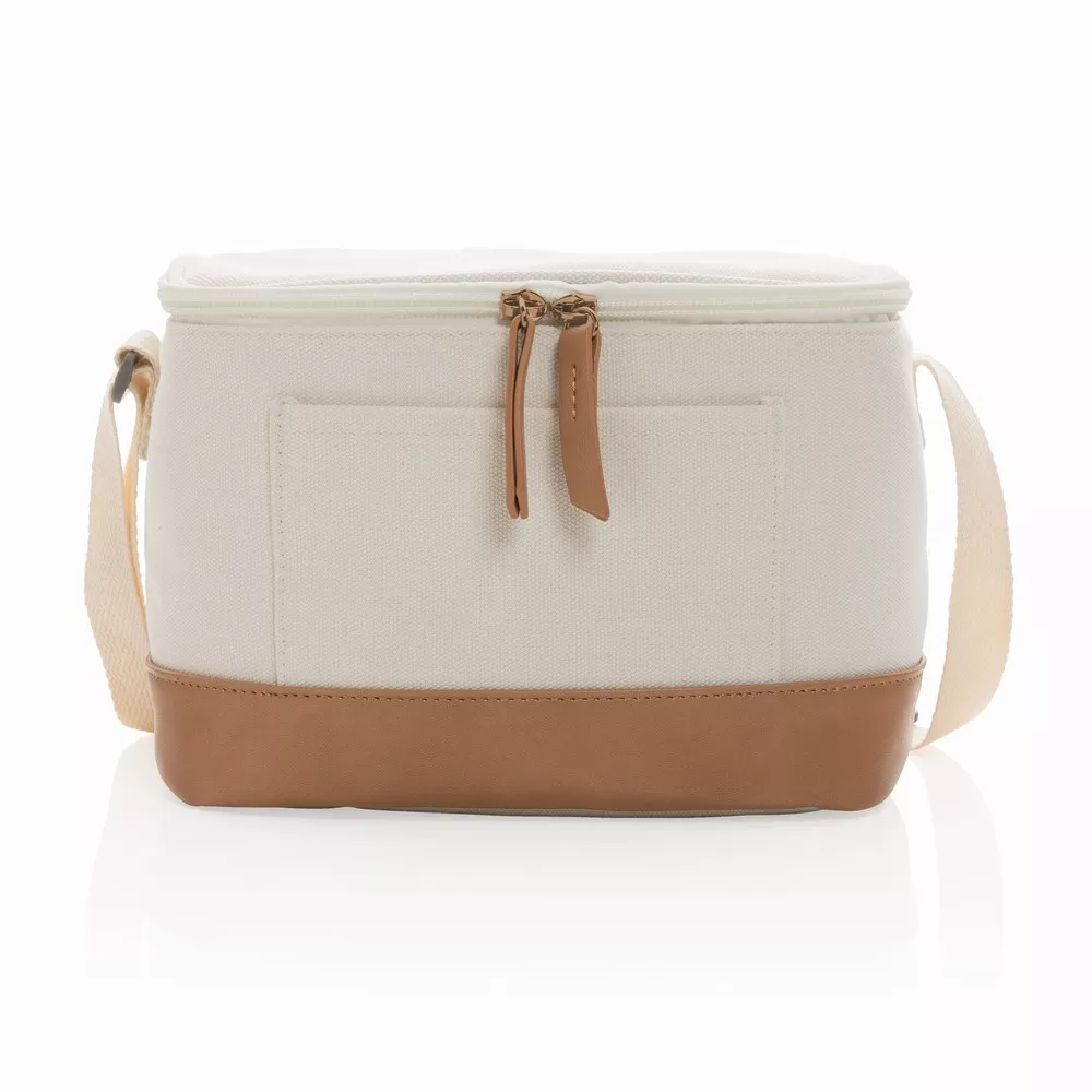 Torba termoizolacyjna, kieszeń z przodu, pojemność torby do 6 puszek 0,33 l, detale z PU, wnętrze z PEVA, na zewnątrz mieszanka 60% bawełny oraz 40% poliestru z recyklingu dzięki czemu każda torba pozwala zaoszczędzić 506,2 l wody, dzięki zastosowaniu technologii śledzącej AWARE™ wykorzystane włókna są identyfikowalne z pochodzenia, 2% wpływów z każdego sprzedanego produktu z kolekcji Impact jest przekazywane na rzecz Water.org