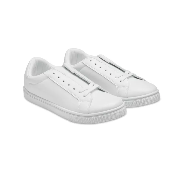 Lekkie trampki z PU z gumową podeszwą zewnętrzną i poliestrowymi sznurowadłami. Rozmiar: 46. Zapakowane w białe pudełku na buty. Trampki są dostarczane ze sznurowadłami przewleczonymi tylko przez 2 pierwsze oczka.