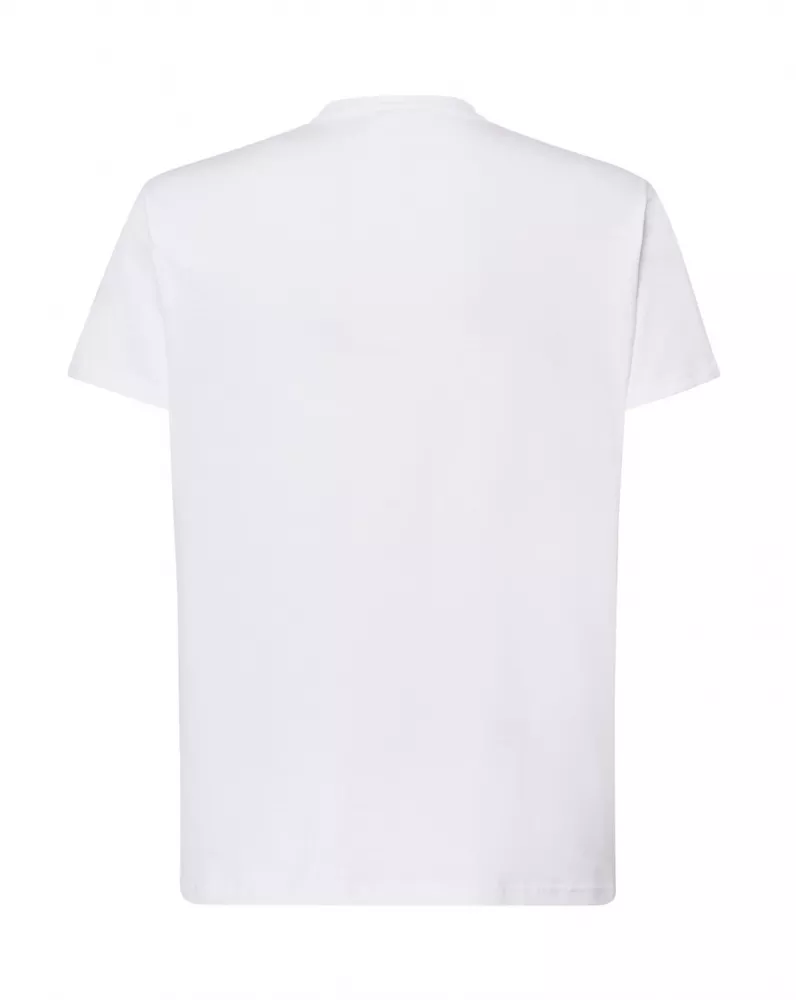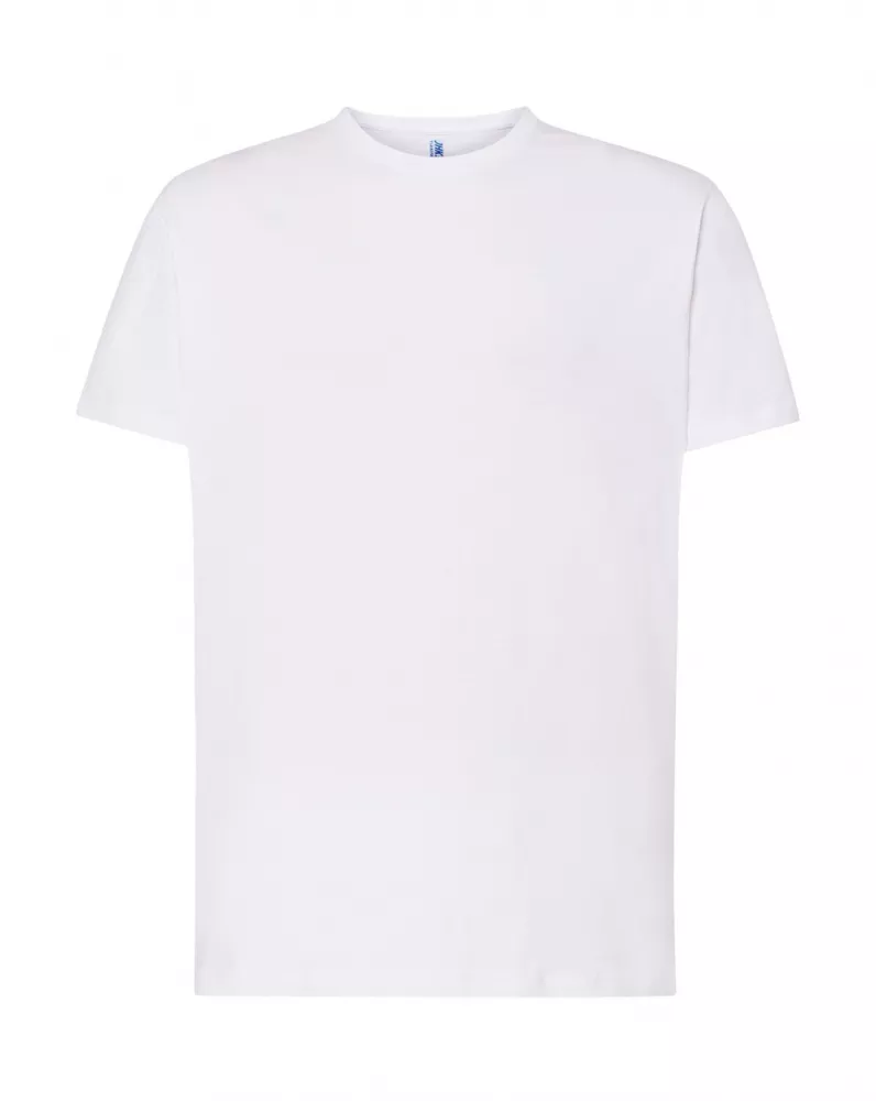 T-shirt męski z krótkim rękawem. Brak bocznych szwów. Taśma wzmacniająca. 100% bawełna.