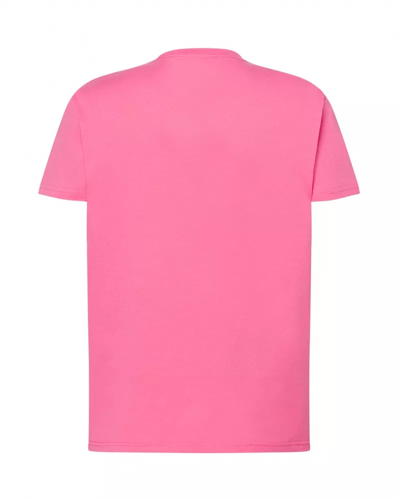T-shirt męski z krótkim rękawem. Brak bocznych szwów. Podwójne szwy na ramionach. Wzmocniony lycrą ściągacz. Taśma wzmacniająca. 100% bawełna stabilizowana.