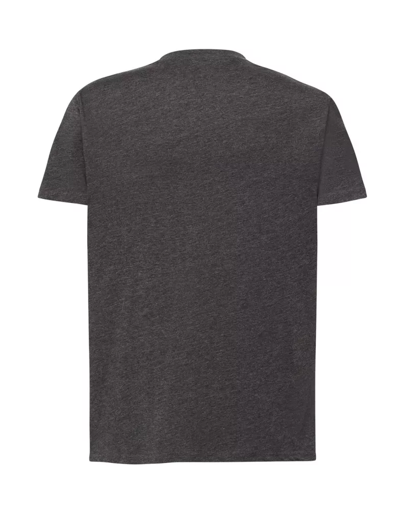 T-shirt męski z krótkim rękawem. Brak bocznych szwów. Podwójne szwy na ramionach. Wzmocniony lycrą ściągacz. Taśma wzmacniająca. 100% bawełna stabilizowana.