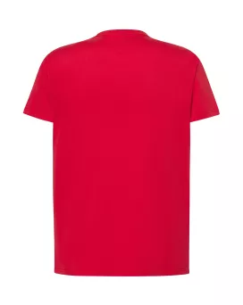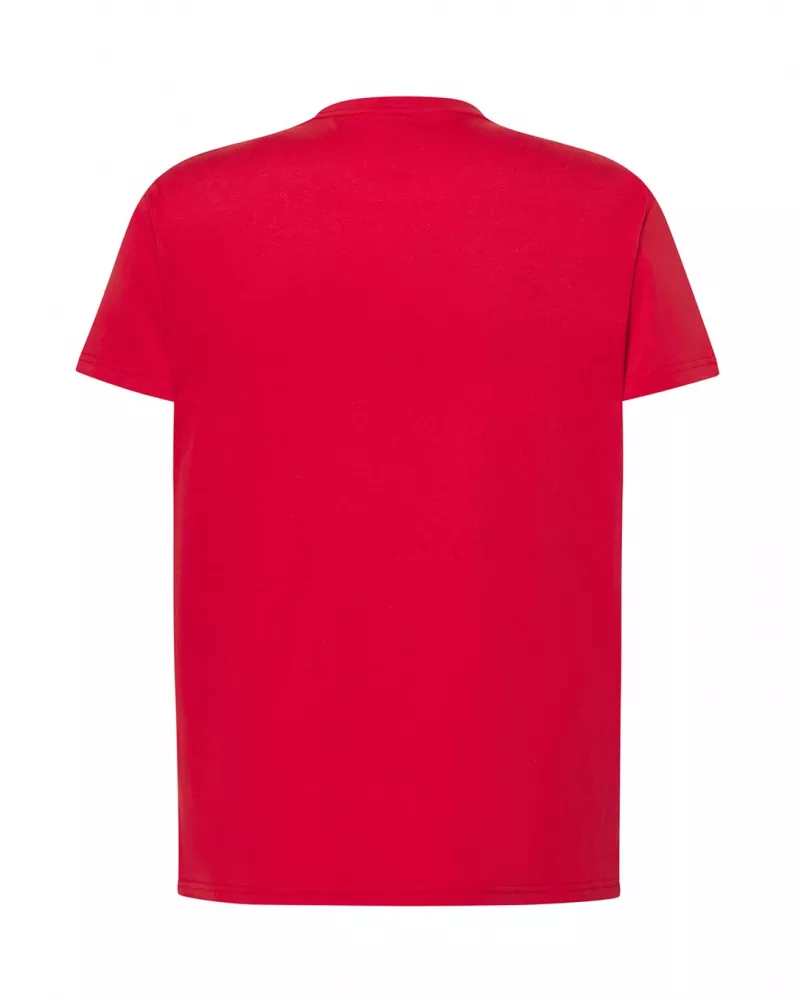 T-shirt męski z krótkim rękawem. Brak bocznych szwów. Podwójne szwy na ramionach. Wzmocniony lycrą ściągacz. Taśma wzmacniająca. 100% bawełna stabilizowana.