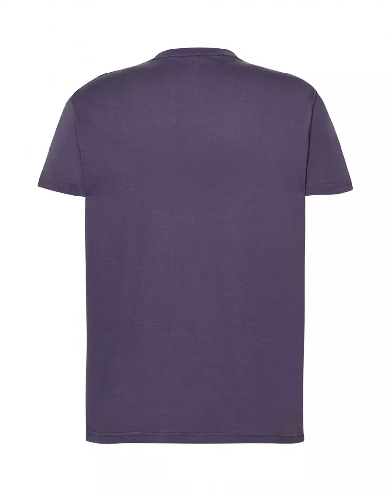 T-shirt męski z krótkim rękawem. Brak bocznych szwów. Podwójne szwy na ramionach. Wzmocniony lycrą ściągacz. Taśma wzmacniająca. 100% bawełna stabilizowana.