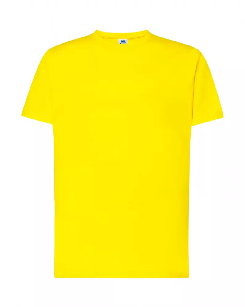 T-shirt męski z krótkim rękawem. Brak bocznych szwów. Podwójne szwy na ramionach. Wzmocniony lycrą ściągacz. Taśma wzmacniająca. 100% bawełna stabilizowana.