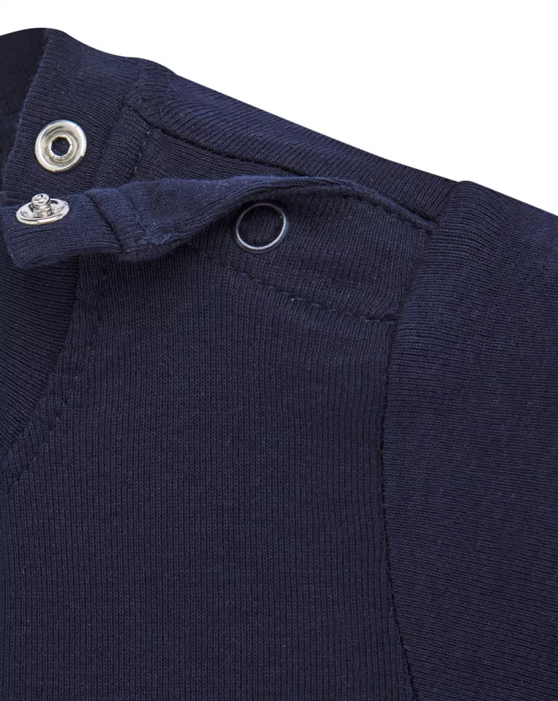 Body dziecięce z krótkim rękawem. Wykończenie pod szyją - lycrą. Zapinane na ramieniu i w kroku. Ściągacz 1x1. 100% bawełna.