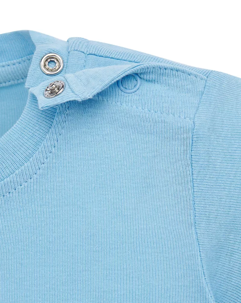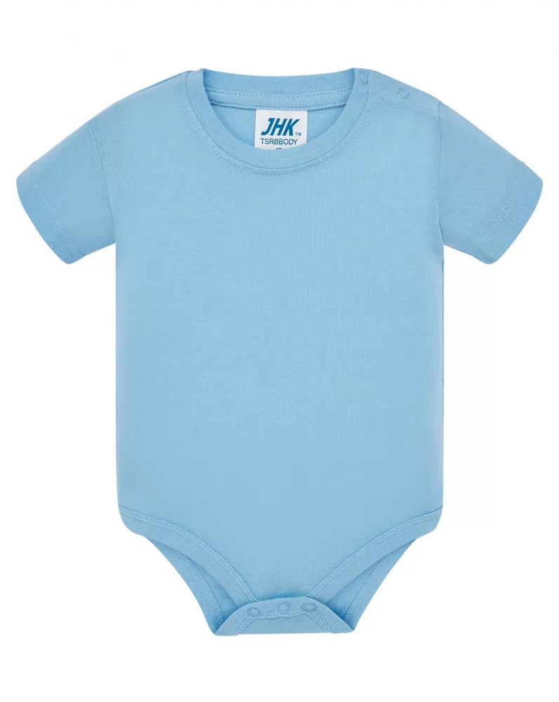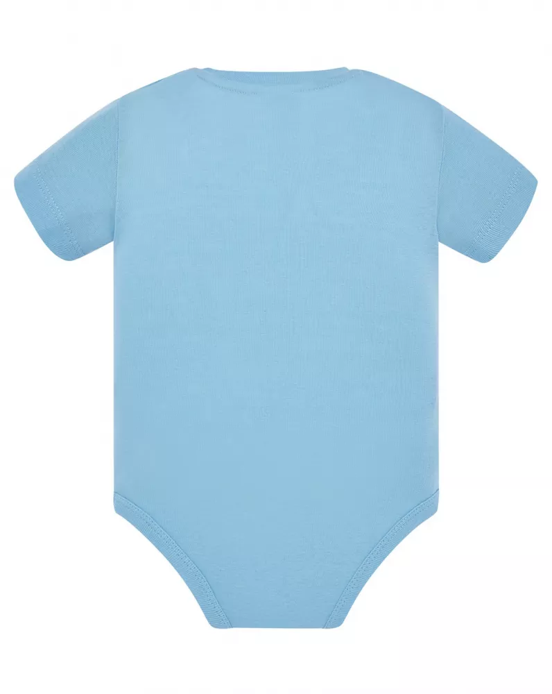 Body dziecięce z krótkim rękawem. Wykończenie pod szyją - lycrą. Zapinane na ramieniu i w kroku. Ściągacz 1x1. 100% bawełna.