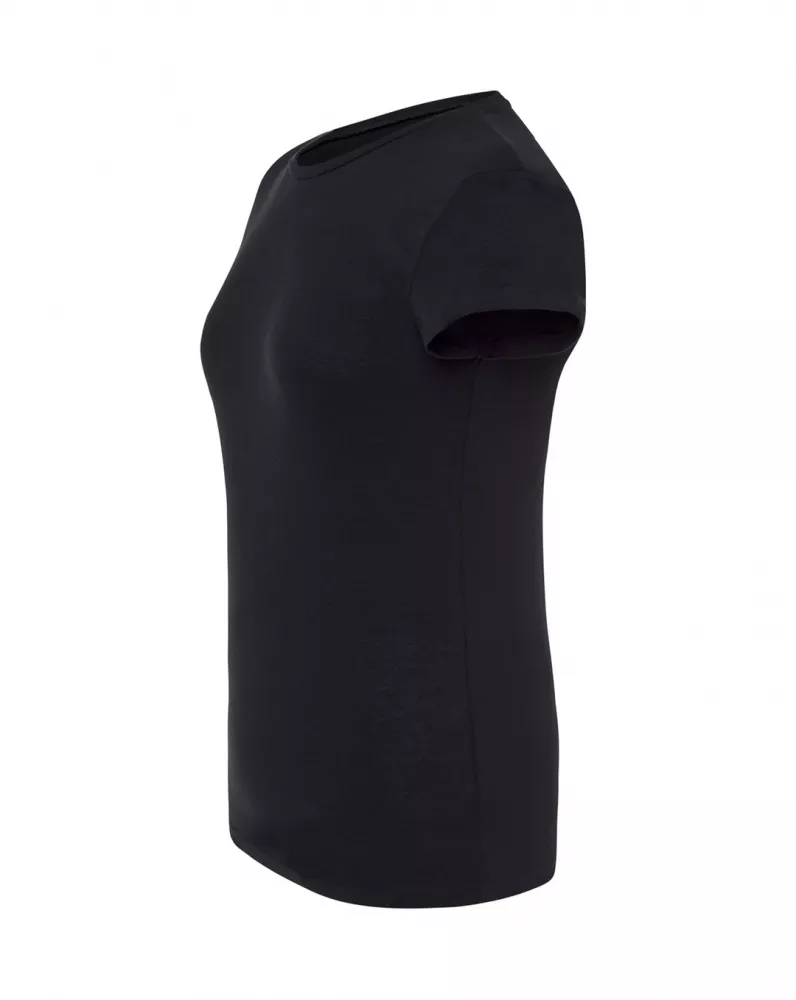 T-shirt damski z krótkim rękawem. Krój dopasowany do sylwetki. Ściągacz przy szyi. Szwy boczne. Podwójne szwy na ramionach i spodzie koszulki.  Łatwo usuwalna metka. 100 % bawełna.