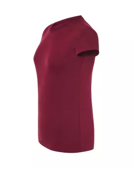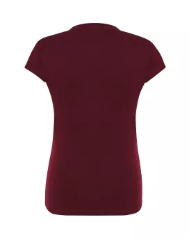 T-shirt damski z krótkim rękawem. Krój dopasowany do sylwetki. Ściągacz przy szyi. Szwy boczne. Podwójne szwy na ramionach i spodzie koszulki.  Łatwo usuwalna metka. 100 % bawełna.