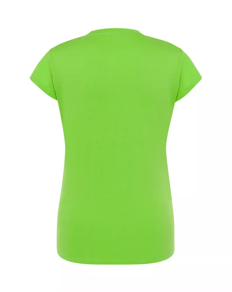 T-shirt damski z krótkim rękawem. Krój dopasowany do sylwetki. Ściągacz przy szyi. Szwy boczne. Podwójne szwy na ramionach i spodzie koszulki.  Łatwo usuwalna metka. 100 % bawełna.