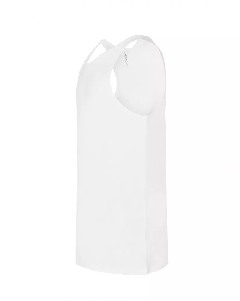 T-shirt męski bez rękawów. Single jersey. Podwójne szwy na ramionach i spodzie koszulki. 100% bawełna.