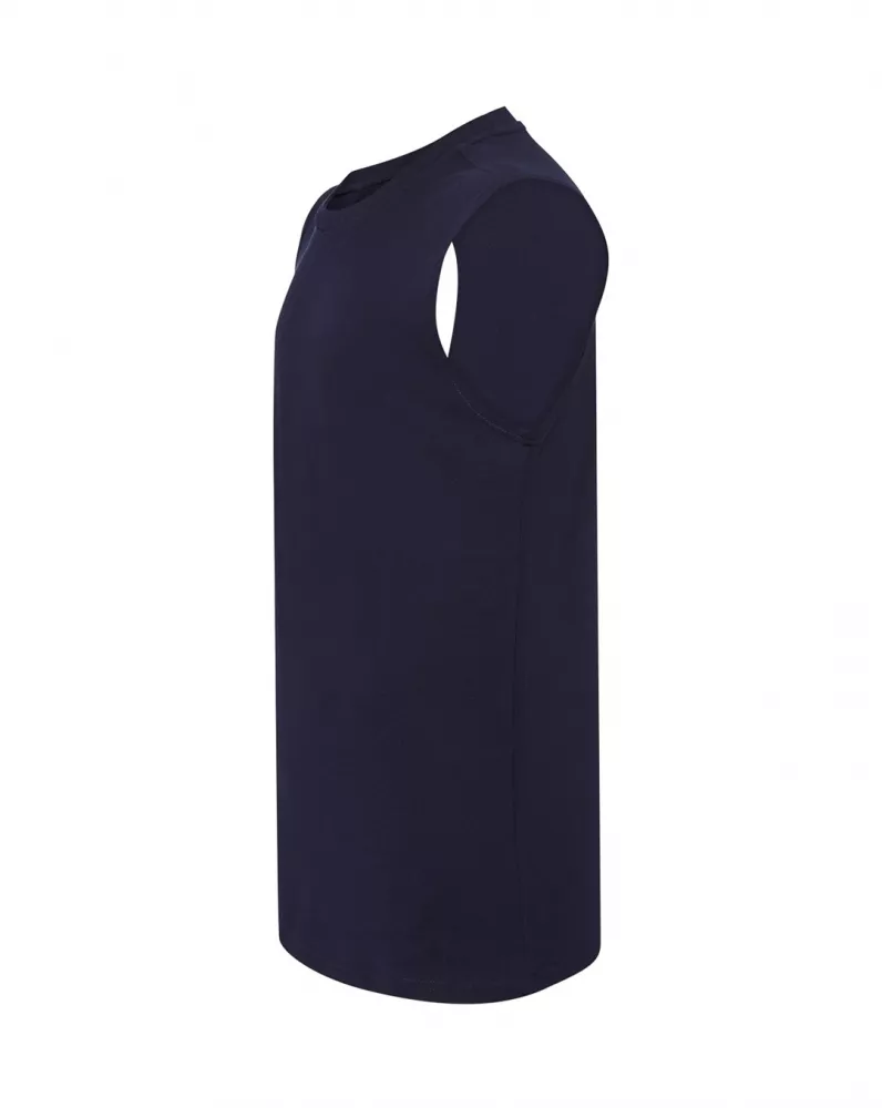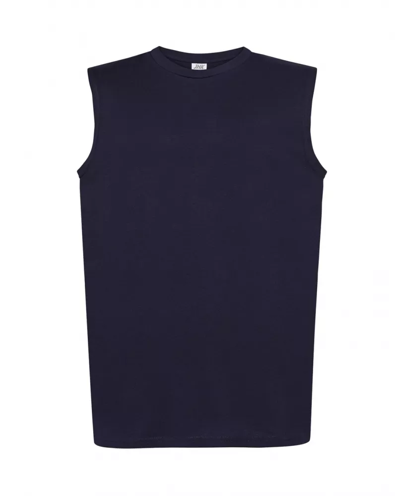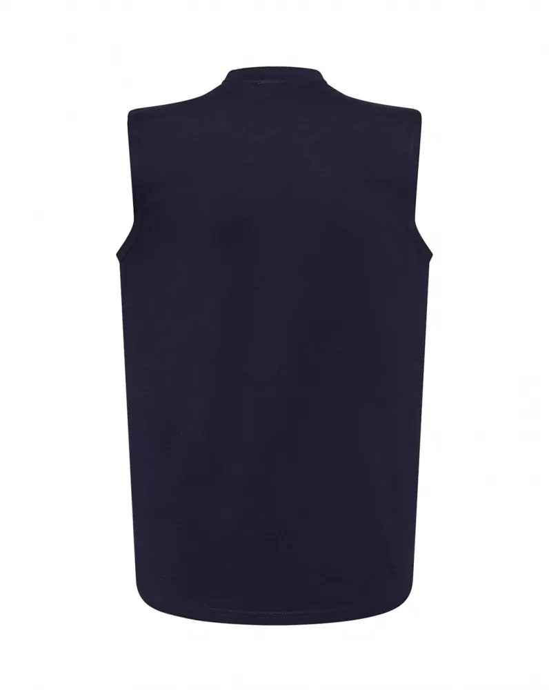 T-shirt męski bez rękawów. Single jersey. Podwójne szwy na ramionach i spodzie koszulki. 100% bawełna.