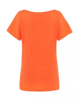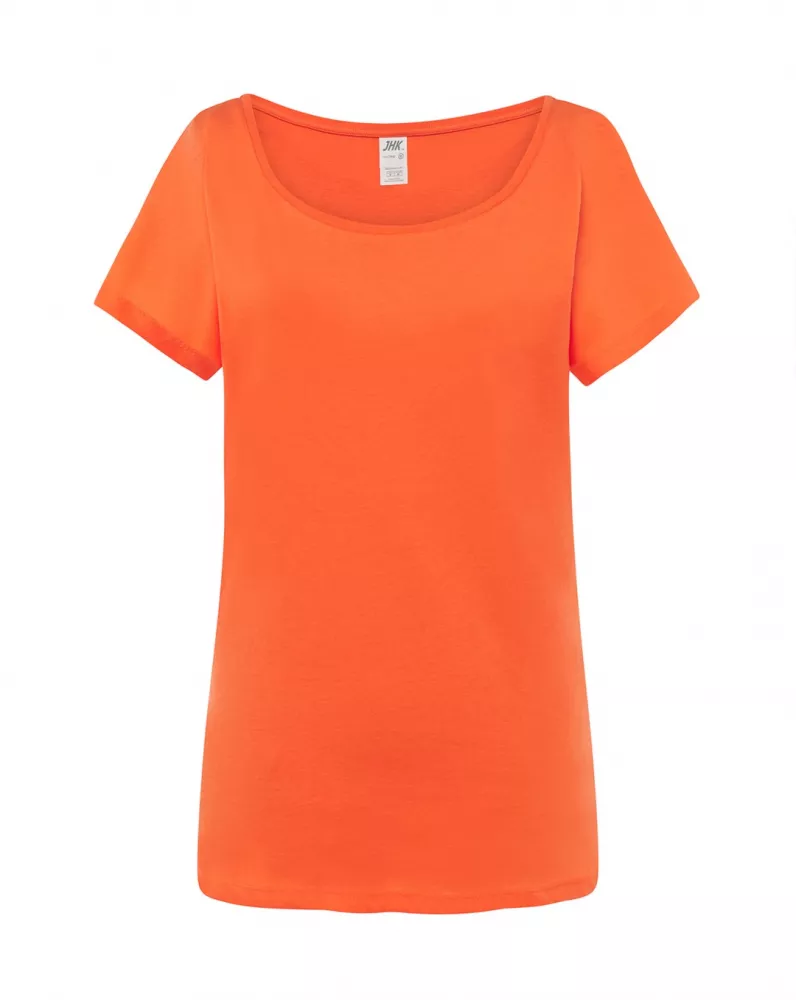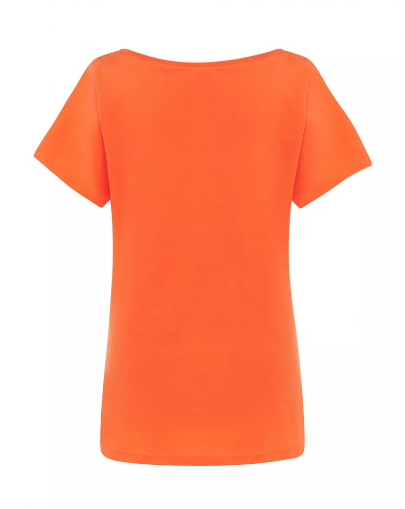 Bluzka damska z krótkim rękawem. Single jersey. Okrągły dekolt, rękawy lekko rozszerzane.
