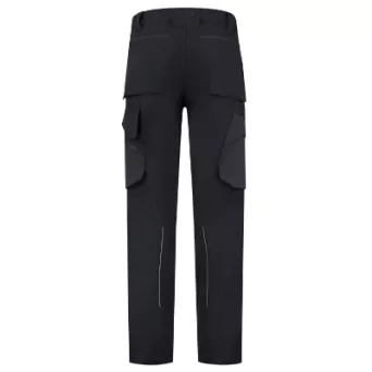 pełna rozciągliwość w 4 kierunkach, elastyczne w pasie, dopasowany krój, bardzo wytrzymały, potrójny szew w kroku, oddychający materiał w okolicy kolan, Cordura® u dołu spodni i na prawej kieszeni na udzie, wielofunkcyjnych kieszeni, pod lewą kieszenią na udzie znajduje się zaczep na identyfikator, 2 tylne kieszenie, jedna z klapką na rzep, odblaskowy nadruk na tylnej nogawce i ściągaczu zamka błyskawicznego, spodnie można wydłużyć o około 6 cm dzięki podwójnemu obszyciu, zawieszka "D" , pętla na młotek, elementy odblaskowe, Tricorp kod produktu: 502027