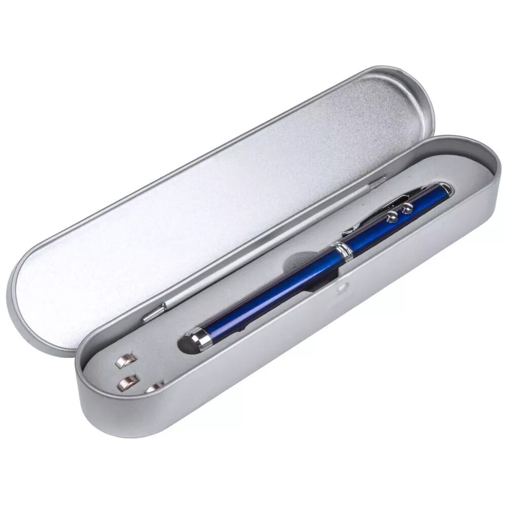 Wskaźnik laserowy z lampką 1 LED w metalowym pudełku, długopis, touch pen