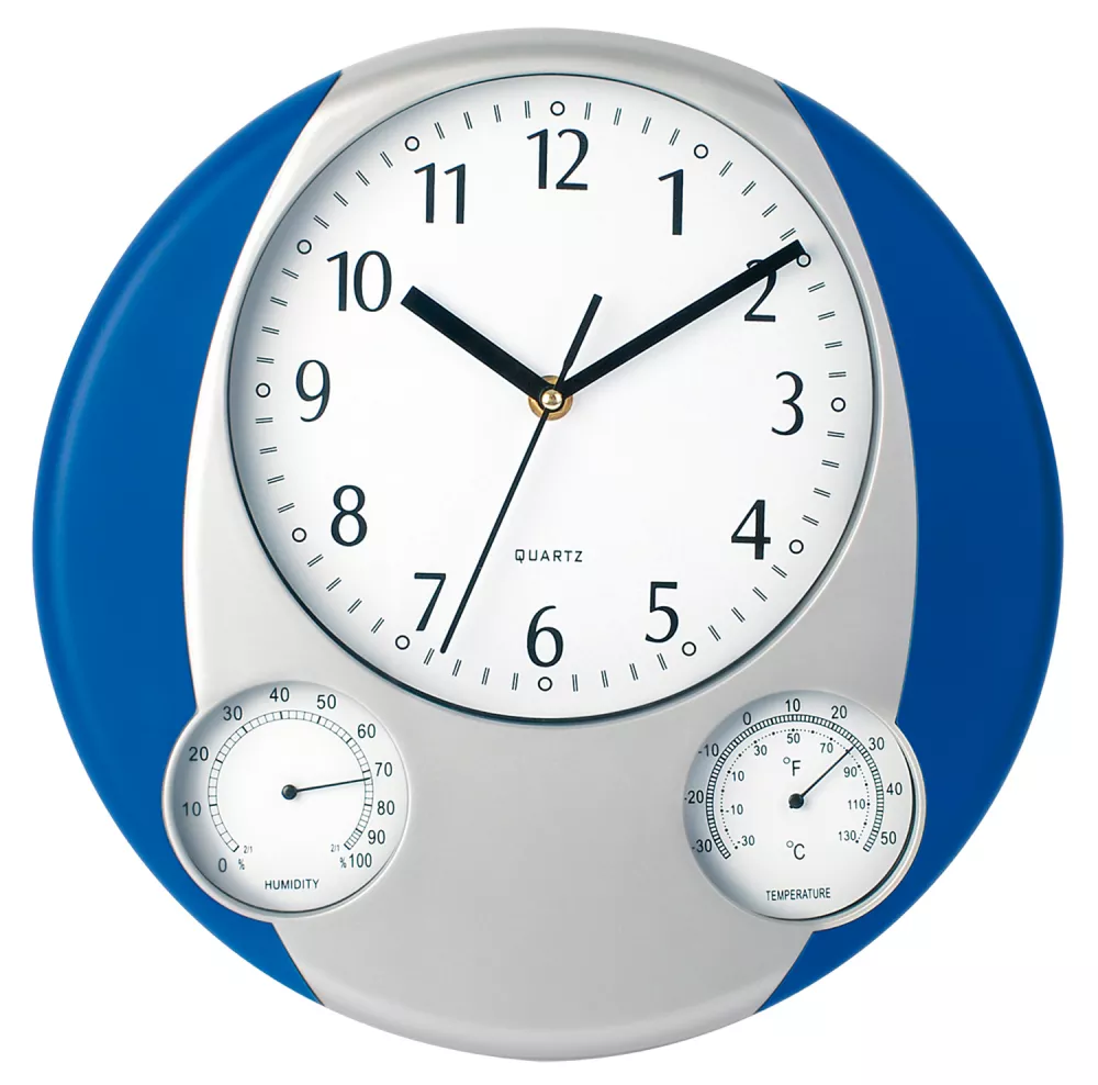 Zegar ścienny, stacja pogodowa z termometrem i wskaźnikiem wilgotności