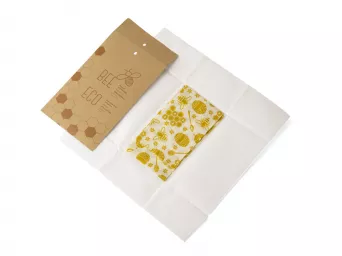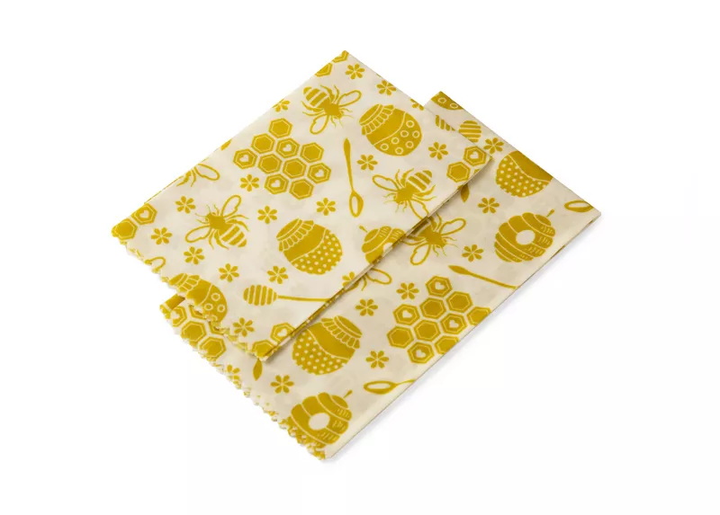 Zestaw woskowijek BEES to w 100% naturalne opakowania do żywności, wykonane z tkaniny bawełnianej pokrytej naturalnym woskiem pszczelim, które pomagają utrzymać świeżość przechowywanego jedzenia. Woskowijki są ekologiczną alternatywą dla folii spożywczej i aluminiowej, są wielorazowego użytku, sprawdzą się świetnie do owijania kanapek, owoców, warzyw lub przekąsek. Zestaw zawiera 2 woskowijki w różnych rozmiarach zapakowane bez użycia plastiku w estetyczną brązową kopertę z nadrukiem wykonanym dla Blue Collection.