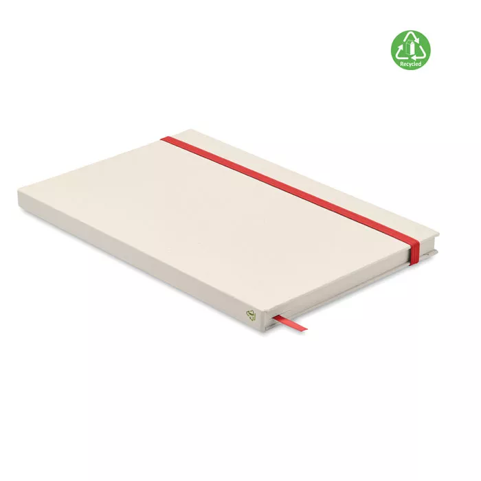 Zeszyt A5 z twardą okładką i 160 stronami w linie (80 kartek 80 g/m²) wykonany w 70% z kartonów po mleku i w 30% z papieru z recyklingu. Elastyczny pasek zamykający, zakładka z tasiemki.